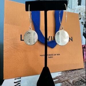 Louis Vuitton LV Gold & Red Circle Keychain Charms on Fish Hook Style Gold Earrings (LVXX030)
