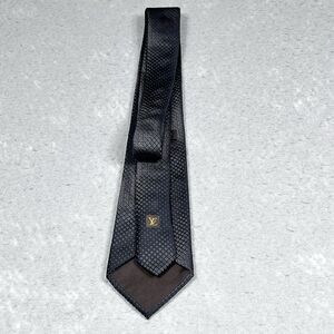 Louis Vuitton LV Mens Size Large Black 100% Silk Necktie Made In Italy