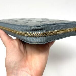Authentic Louis Vuitton LV Monogram Vernis Zippy Zip Around Long Leather Wallet in slate gray with blue/green undertones and gold tone hardware. Date code SP2141