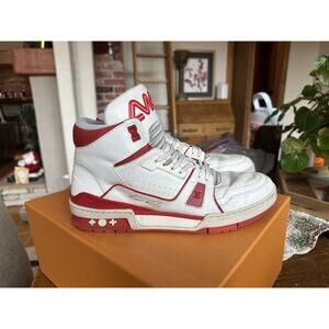 Louis Vuitton LV TRAINER SNEAKER MID TOP W/BOX Men’s UK size 8 Red White RARE!