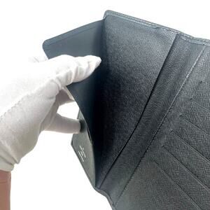 Authentic and in overall good preowned condition. Exterior shows some minor signs of wear, some corner and Edge wear as shown in photos. Leather is still soft and supple. Interior is in great condition and shows no signs of peeling under any of the flaps or pockets. There is one small separation Left side top as shown in photos. Still working perfectly fine as a wallet and would be a very easy fix if you decided to do so. Gorgeous and practical overall peace and you can’t go wrong with the black color!
