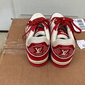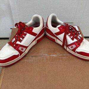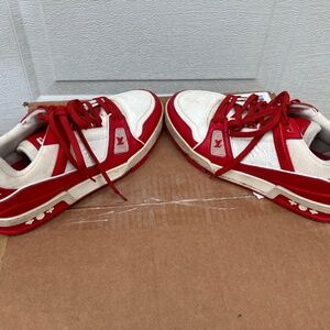 Louis Vuitton LV Trainer Sneaker Red White Leather Low Top Us Size 8 COA