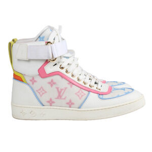 Louis Vuitton Lace Up Boombox High Top Sneakers Blue Pink White Leather LV Sz 37