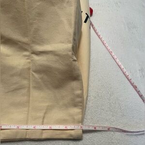 Cream Louis Vuitton dust bag with blue drawstrings.