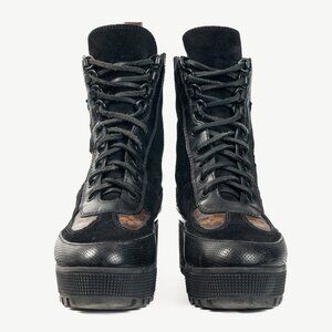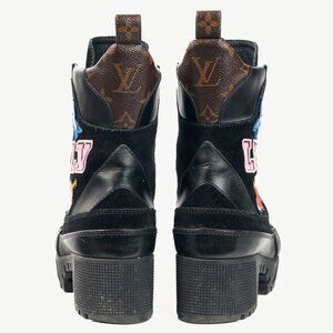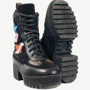 Louis Vuitton Laureate Black Suede & Monogram Canvas Patch-Applique Boots