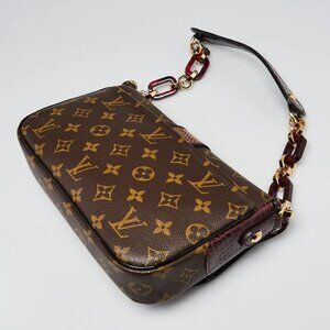 This ultra-rare Louis Vuitton Exotic Pochette Bag Bag is a limited edition piece. Featuring Monogram canvas with alligator and natural python trimmings. Polished gold hardware completes this exquisite piece. This is a must-have statement bag for collectors everywhere! Approximate retail is $6740