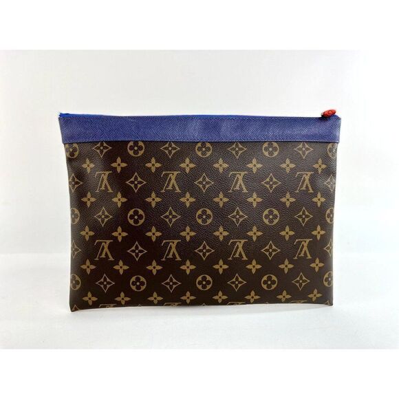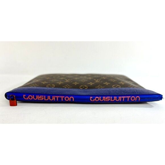 ADDITIONAL INFORMATION - The Louis Vuitton Apollo Pochette Split Line GM Bag is a combination of the Louis Vuitton monogram with bright leather trim, a unique lock zipper pull and colorful hardware. This bag is perfect on its own as a clutch or throw in a bigger bag. It is big enough to hold important documents, a tablet or any other daily essentials. Don't miss out on this limited edition piece!