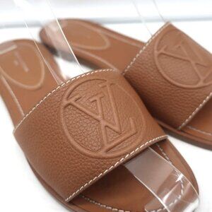 Louis Vuitton Lock It Flat Mules Brown Leather Size 37 Open Toe Sandals