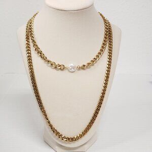 Louis Vuitton Lock & Key Gold with Unbranded Cuban Style Stainless Double Chain