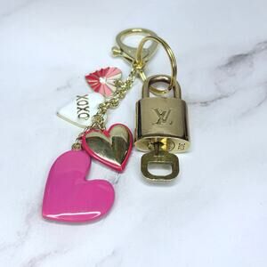 Louis Vuitton Lock & Key Set #302 w/ a Pink & Gold Heart Cluster Keychain