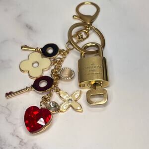 Louis Vuitton Lock & Key Set #302 with a Charm Cluster Keychain/Bag Charm