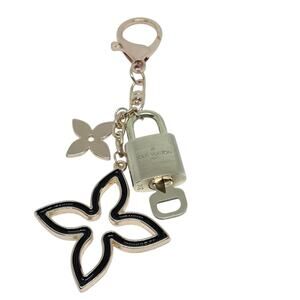 Louis Vuitton Lock & Key Set #314 w/ a Black/Rhinestone Clover Charm Keychain