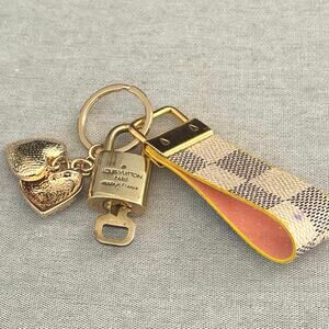 Louis Vuitton Lock & Key Set #315 with a Handmade Damier Loop Keychain and Heart Charm