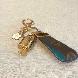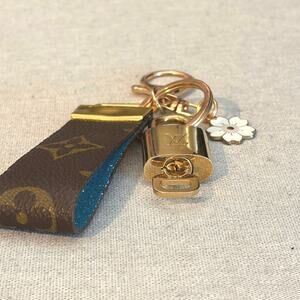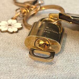 Louis Vuitton Lock & Key Set #448 w/ a Monogram Canvas Keychain and Flower Charm