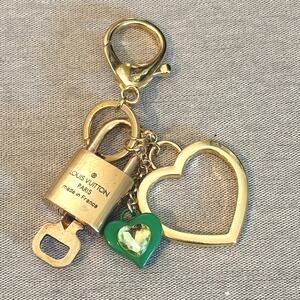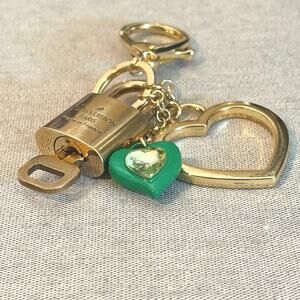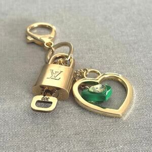 Louis Vuitton Lock and Key #300 with a Gold & Green Heart Charm Keychain/Bag Charm