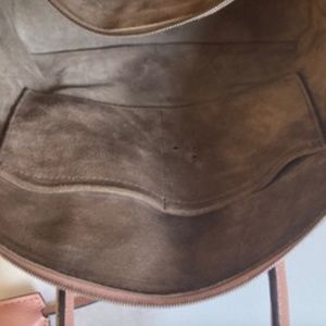 It does have small scuffs on both the front back and bottom. Also on the inside there are three black dots on the left front pocket