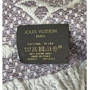 Louis Vuitton Logomania Silk Wool Scarf Monogram Grey Light Purple Pink