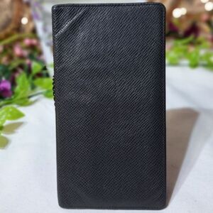 Exterior is in great condition. Minor wear and signs of aging. The leather is intact and not cracked or ripped. There is slight wrinkling from use. Slight discoloration from age. Color is a dark dark grey almost black color.