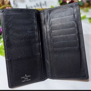 Interior has tons of space. There is damage to the leather on the left side bill flap. 6 credit card slots, 2 full length slots for bills, 1 smaller slot and 1 open flap. The rubbing on the leather appears to be from credit cards being stored on the other side. Other than that damage the wallet is stunning with tons of functional use.