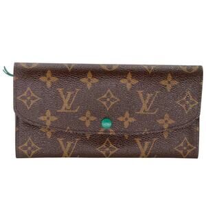 Louis Vuitton signature Monogram Emily Luxury Green Long Bifold Wallet Rouge with green detail leather & perfect for daily use. This is a Forest Green Long Travel Wallet perfect for Leisure or Daily Use. Wallet is in pre-loved condition with basic wear there is some scuffs on the bottom corners and some leather creases from daily use the hardware has some discoloration.