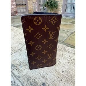 Louis Vuitton long wallet, known as the Monogram Portefeuille Brazza NM M80523, is designed for men and features a bi-fold style. It is available in a combination of colors including black, brown, green, and orange. The wallet is in used condition, classified as Rank AB, indicating it shows slight traces of usage, including minor scratches and dirt, but remains generally in good condition. Potential buyers are encouraged to review the provided images for a clear understanding of the item's exact condition. No additional accessories are included with the wallet.