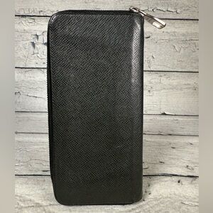 Authentic Louis Vuitton Long Wallet Zippy Vertical Ardoise Black Taiga canvas.