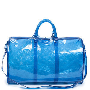 Louis Vuitton Travel Bag Ltd. Ed. Virgil Abloh Prism Keepall Bandouliere 50 in Blue Monogram PVC and Silver hardware. The product is in Perfect Condition (AA).