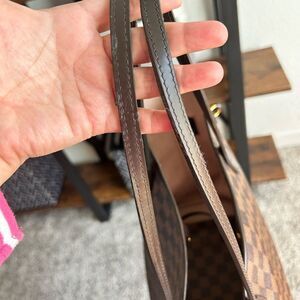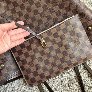 Minor flaws like dirty on the inside of the bag and on the zipper part of the pouch, white marks, some glue residue (I think) on the handle