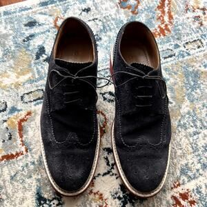 Louis Vuitton Melrose Derby navy blue suede with red sole oxfords shoes size 9
