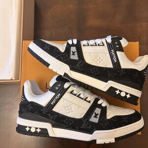 Louis Vuitton Men Sneaker Lace Up Shoes Blue Suede Shoes Made in Italy Size 8UK