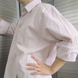 Louis Vuitton Men's Dress Shirt SZ L. 100% authentic. Like new! Worn only once just for modeling purposes. Made in France. 100% Cotton. Size L. Soft pink, gray & white striped. Fantastic shirt! Please contact for exact measurements. Top rated trusted seller, & suggested user since 2014, Certified posh luxury reseller. Price is firm.