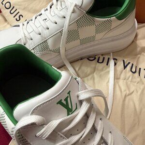 Louis Vuitton Men's Sneaker, 2-tone. Green mesh/checker pattern. size 12, (like new condition)