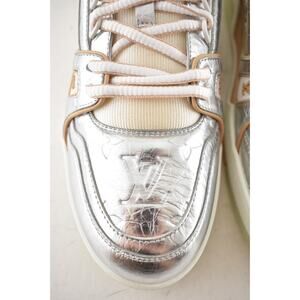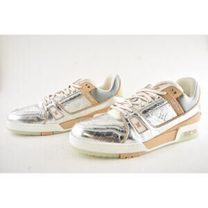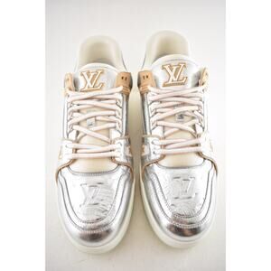 Louis Vuitton Metallic Silver Beige White Low Top Trainer Sneaker UK 9 US 10 11