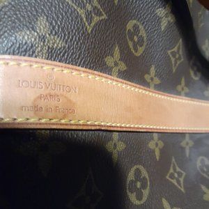 Louis Vuitton Mongram Keepall Duffle in excellent used condition. Light vachette, light watermarks, light handle darkening, tarnishing and light scuffing. Gorgeous travel piece with plenty of room for a three to five day trip. Can be carried on an airplane. Features dual rolled handles, gold-tone hardware and full length dual zipper closure adapted for a lock and key set. Interior features one large open compartment and D-ring.