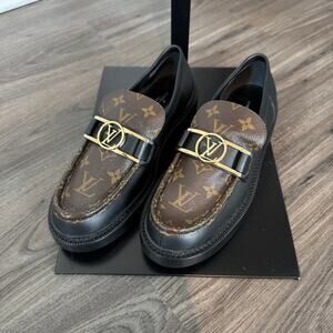 Louis Vuitton Monogram Academy Loafers NEW Black Brown Leather Gold Plate 40