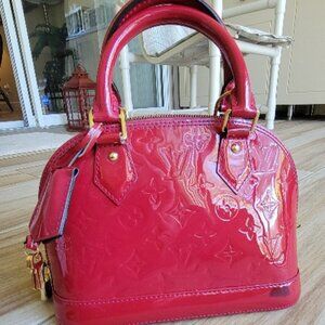 Louis Vuitton Monogram Alma Rose Patent Leather Satchel Shoulder Handbag BB
