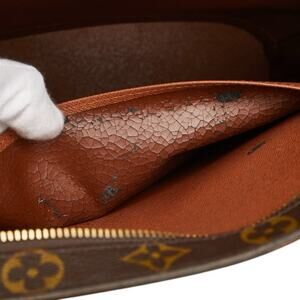 Outside - Scratches, stains, discoloration Side - Scratches Bottom - Corner scuffs Handle - Dirt, discoloration Metal fittings - Patina rust, discoloration Opening/closing opening - Edge cracks Inside - Peeling, stains, cuts