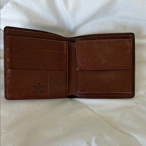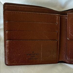 Sophisticated bi-fold wallet with iconic monogram. Perfect for stylish organization.