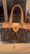 Chic Louis Vuitton shoulder bag with iconic monogram. Features dark brown and tan leather accents. Ideal for a stylish look.