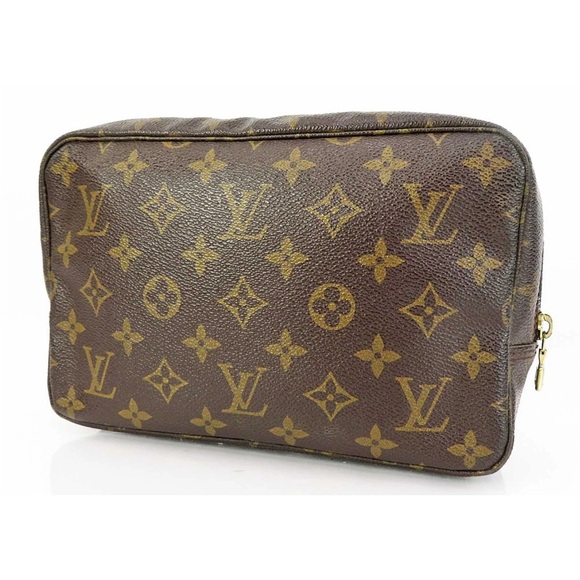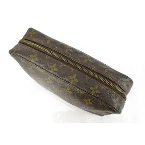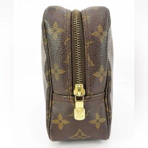 Sophisticated Louis Vuitton toiletry bag. Iconic monogram design. Ideal for travel.