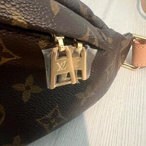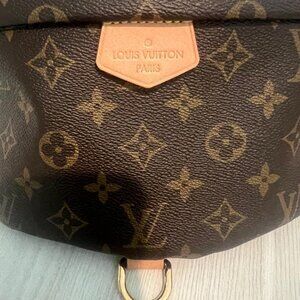 This is an authentic LOUIS VUITTON Monogram Bumbag. This stylish belt bag is crafted out of traditional Louis Vuitton monogram on toile canvas. The bag features a vachetta cowhide leather top handle, an adjustable waist strap, and a rear zipper pocket. The main zipper opens to a black fabric interior. STICKERS ARE STILL ON ALL METAL! EXCELLENT CONDITION.