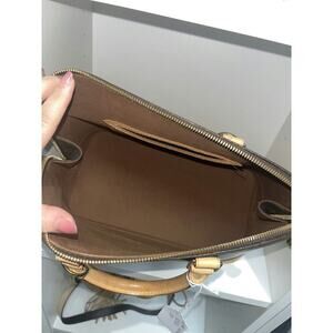 Add a touch of timeless elegance to your collection with the Louis Vuitton Monogram Canvas Alma PM Handbag. This iconic bag features the classic Louis Vuitton monogram pattern, accented by luxurious tan leather trim and gold-tone hardware. The structured shape provides a sophisticated silhouette, while the double rolled leather handles ensure comfortable carrying. The spacious interior is lined with brown textile and includes a slip pocket for easy organization. Secure your essentials with the double zip closure. This pre-owned Alma PM is in excellent condition with minor signs of wear, showcasing the quality and durability of Louis Vuitton craftsmanship. Made in France and authenticity guaranteed, this handbag is a must-have for any fashion enthusiast.