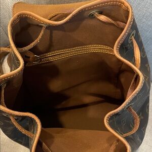 Elegant Louis Vuitton backpack with signature monogram canvas. Features tan leather accents and adjustable straps. Ideal for stylish travel or daily use. Very clean and Good condition. See pics for wear