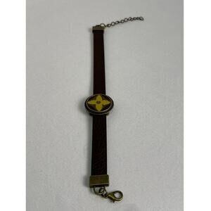 Louis Vuitton Monogram Canvas Brown Leather Bracelet Metallic Gold