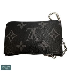 Louis Vuitton Monogram Canvas Key Pouch Coin Card Holder Chain Black~Grey