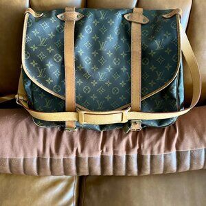 This Louis Vuitton Monogram Canvas Saumur 43 Messenger Bag will be your new favorite bag. With its chic saddle design, double compartment each with a buckle closure and adjustable long shoulder strap, this classic design of Louis Vuitton will never go out of style. This extra large size of the Saumur family features two leather strips down the bag and an even larger interior size. This would be a great cover night or weekend bag! Current retail price of a Saumur GM is $600, OBO