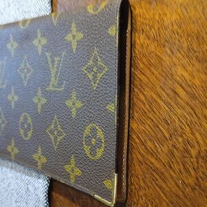 Authentic Louis Vuitton Monogram Chequier Double M62225 is a classic checkbook wallet crafted from signature Monogram canvas with a cross-grain leather interior. It features multiple compartments for checks, receipts, cards, and bills, making it ideal for organized daily use. This little Louis Vuitton Monogram wallet is super super cute. Its about as close as you will get to brand new. Please go check out the pictures to see for yourself. If you have any questions please let me know thanks