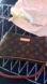 Chic Louis Vuitton clutch with iconic monogram. Features brown leather and gold details.