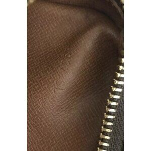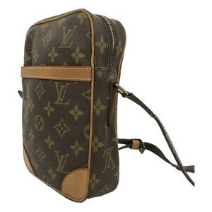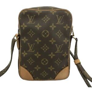 Sleek crossbody bag is crafted from LV monogram canvas with contrasting leather detailing.