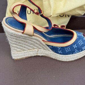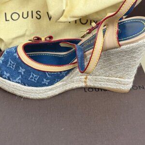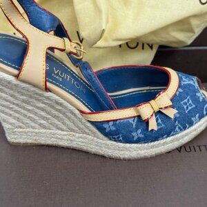 Louis Vuitton Monogram Denim Bow Espadrille Wedges